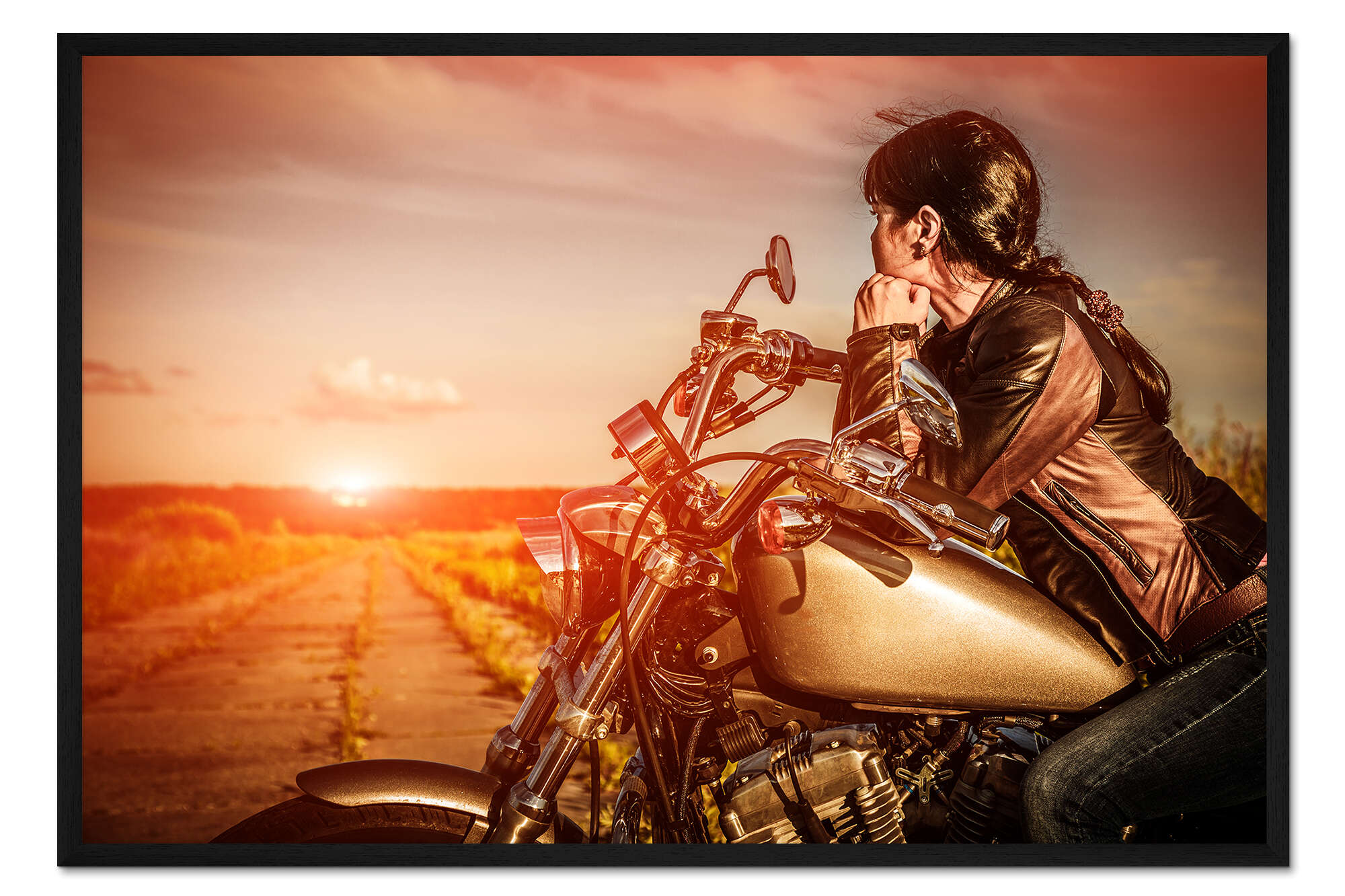 Posterlounge   Wandbilder   Fotografie   Gerahmter Kunstdruck Bikerin auf ihrer Maschine