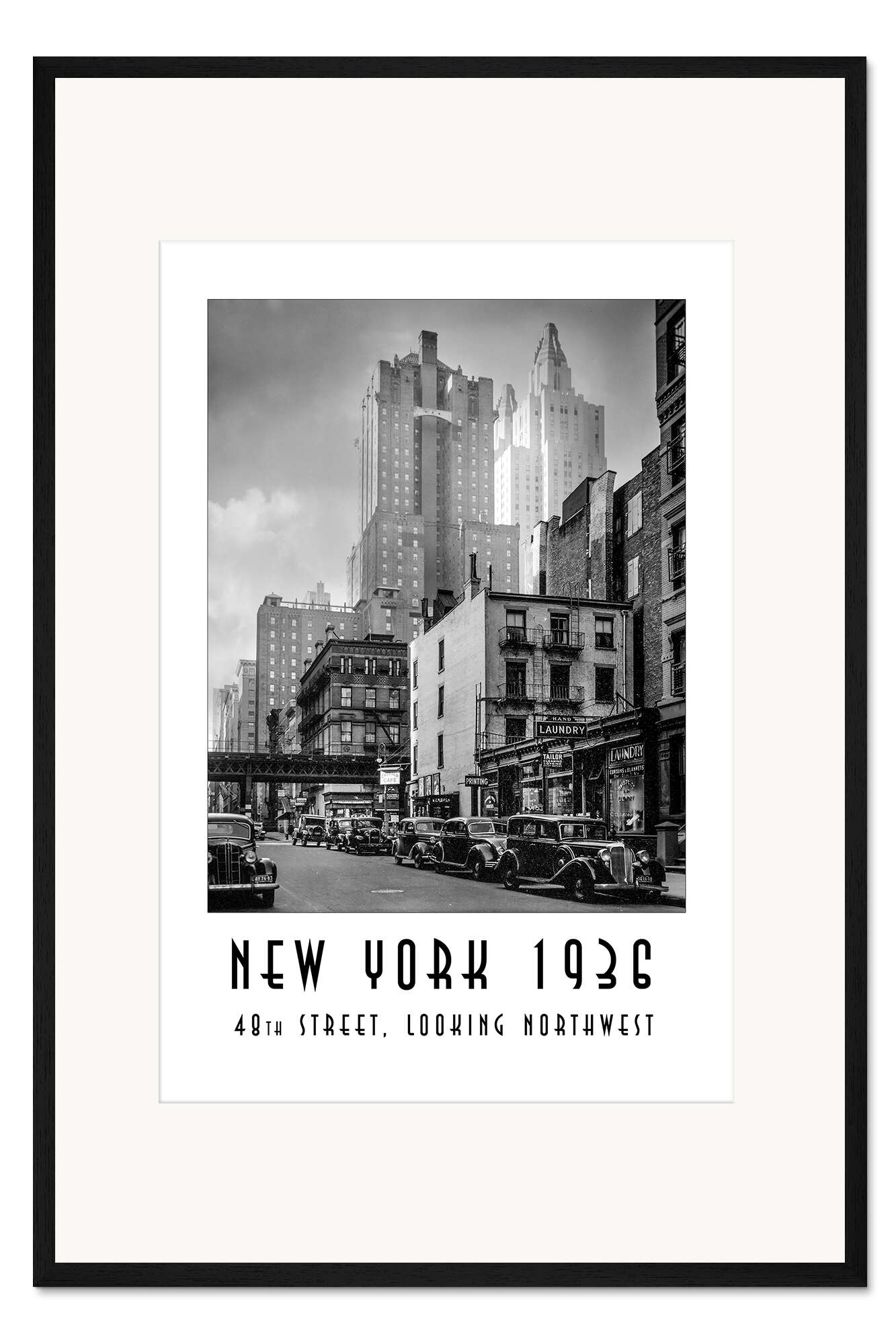 Posterlounge   Wandbilder   Schwarz-Weiß   Christian Müringer   Gerahmter Kunstdruck Historisches New York: Manhattan, 48th street, looking northwest