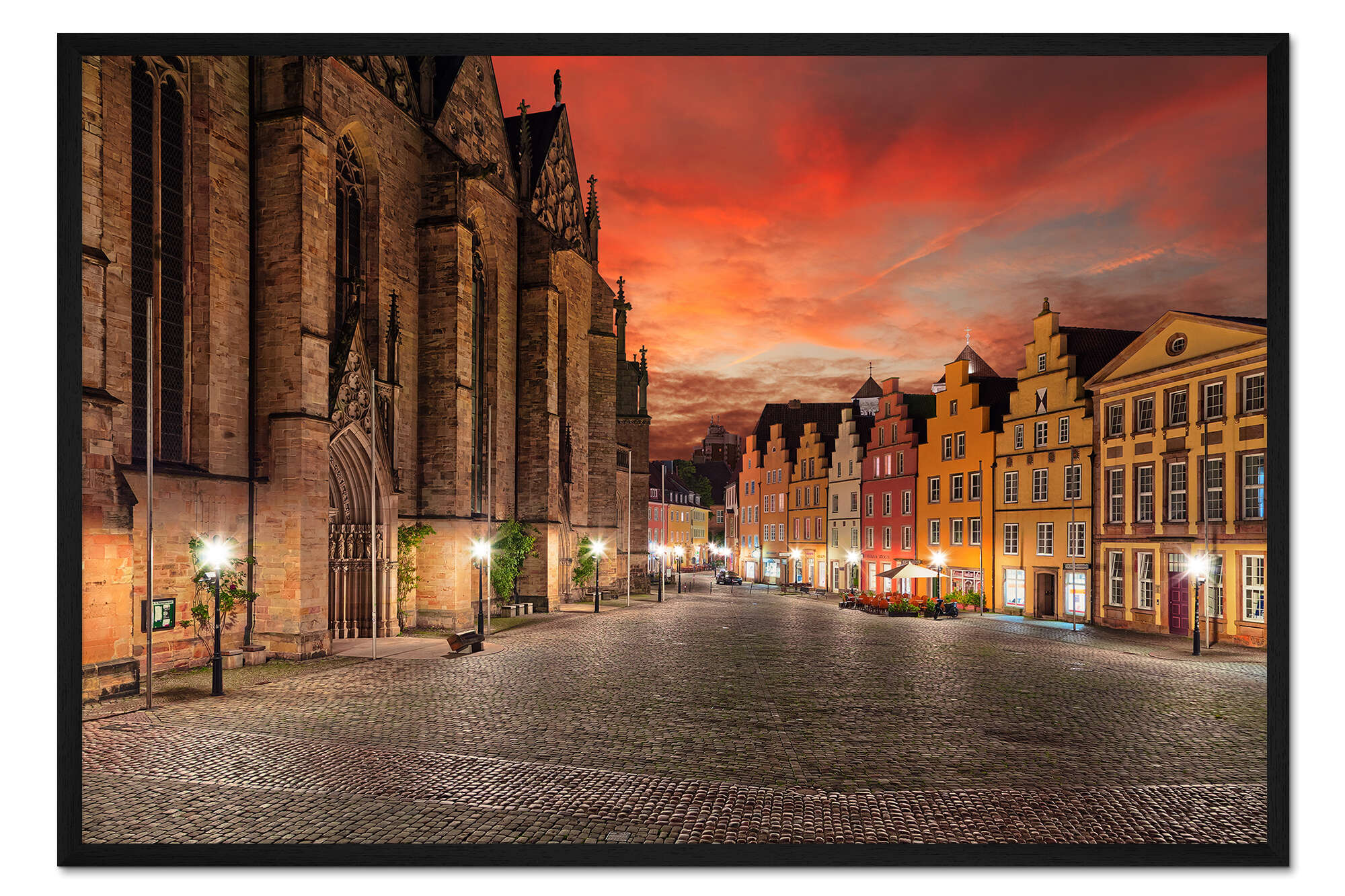 Posterlounge   Wandbilder   Querformat   pixelliebe   Gerahmter Kunstdruck Osnabrück, Marktplatz am Abend