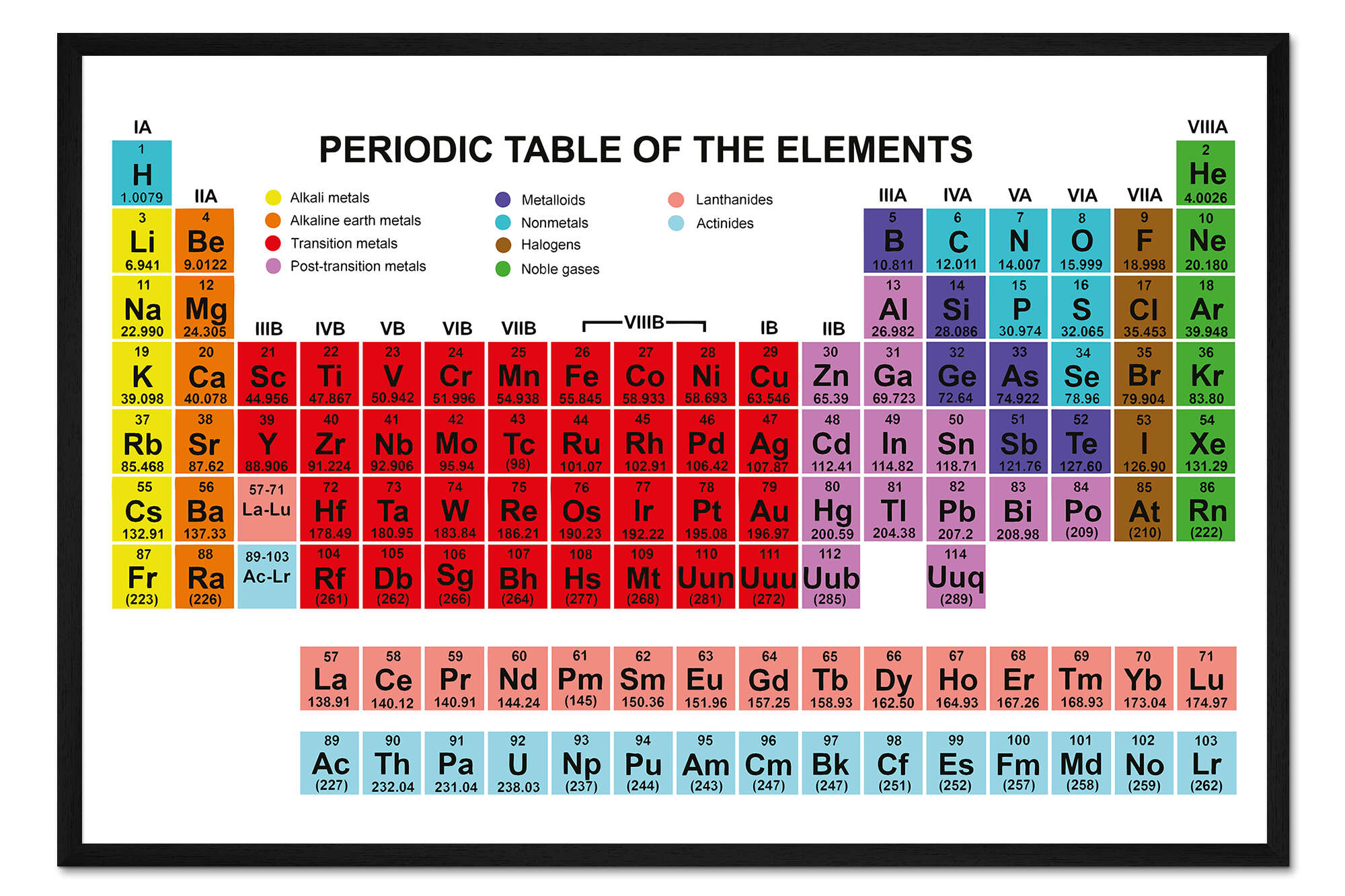 Posterlounge   Wandbilder   Querformat   Gerahmter Kunstdruck Periodensystem der Elemente (Englisch)