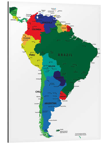 Posterlounge   Wandbilder   Illustration   Magnettafel Südamerika – Politische Karte (Englisch)