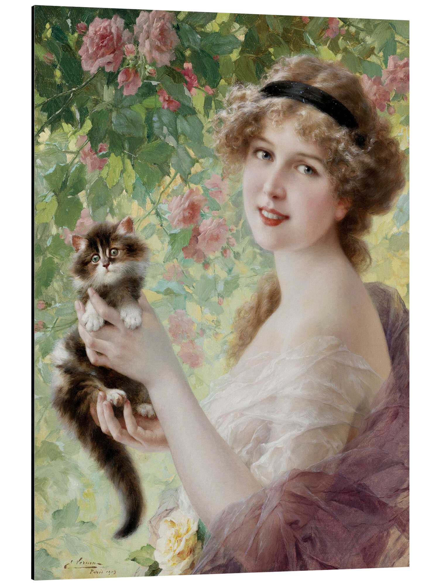 Junges Mädchen mit einem Kätzchen von Emile Vernon Master Collection