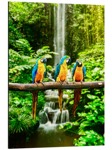 Posterlounge   Wandbilder   Grün   Magnettafel Drei Aras vor einem Wasserfall