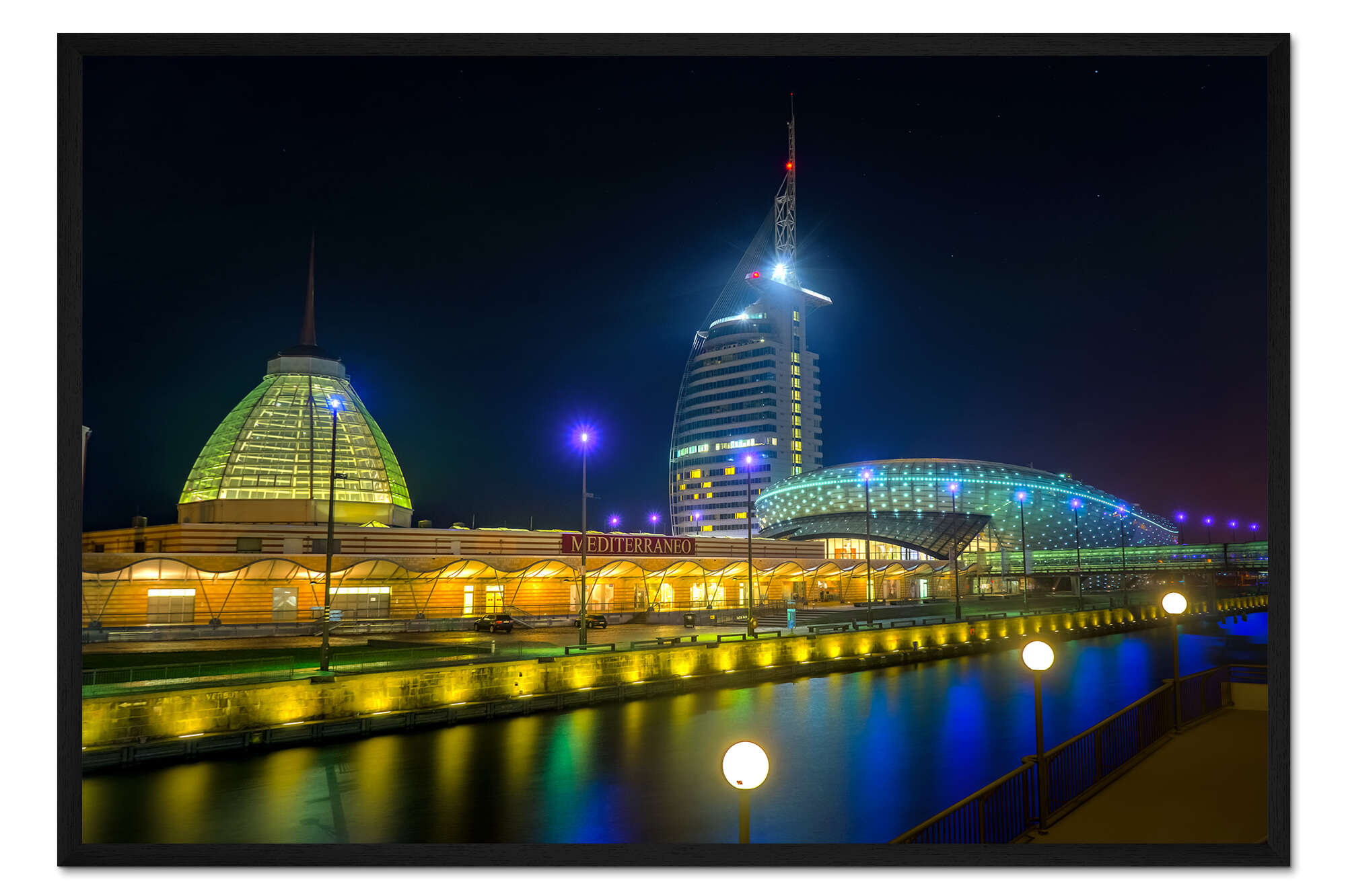 Posterlounge   Wandbilder   Fotografie   Rainer Ganske   Gerahmter Kunstdruck Bremerhaven Klimahaus bei Nacht Havenwelten