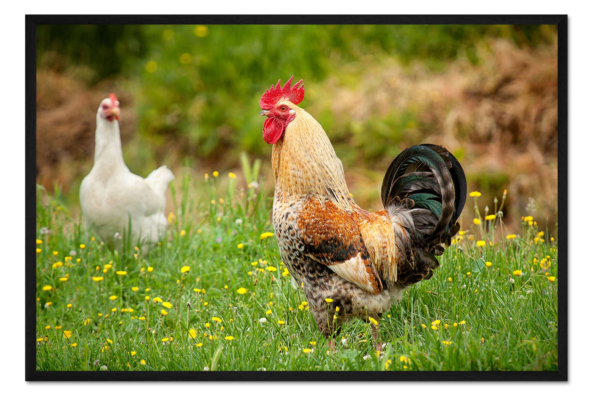 Posterlounge   Wandbilder   Querformat   Gerahmter Kunstdruck Hühner auf der Wiese