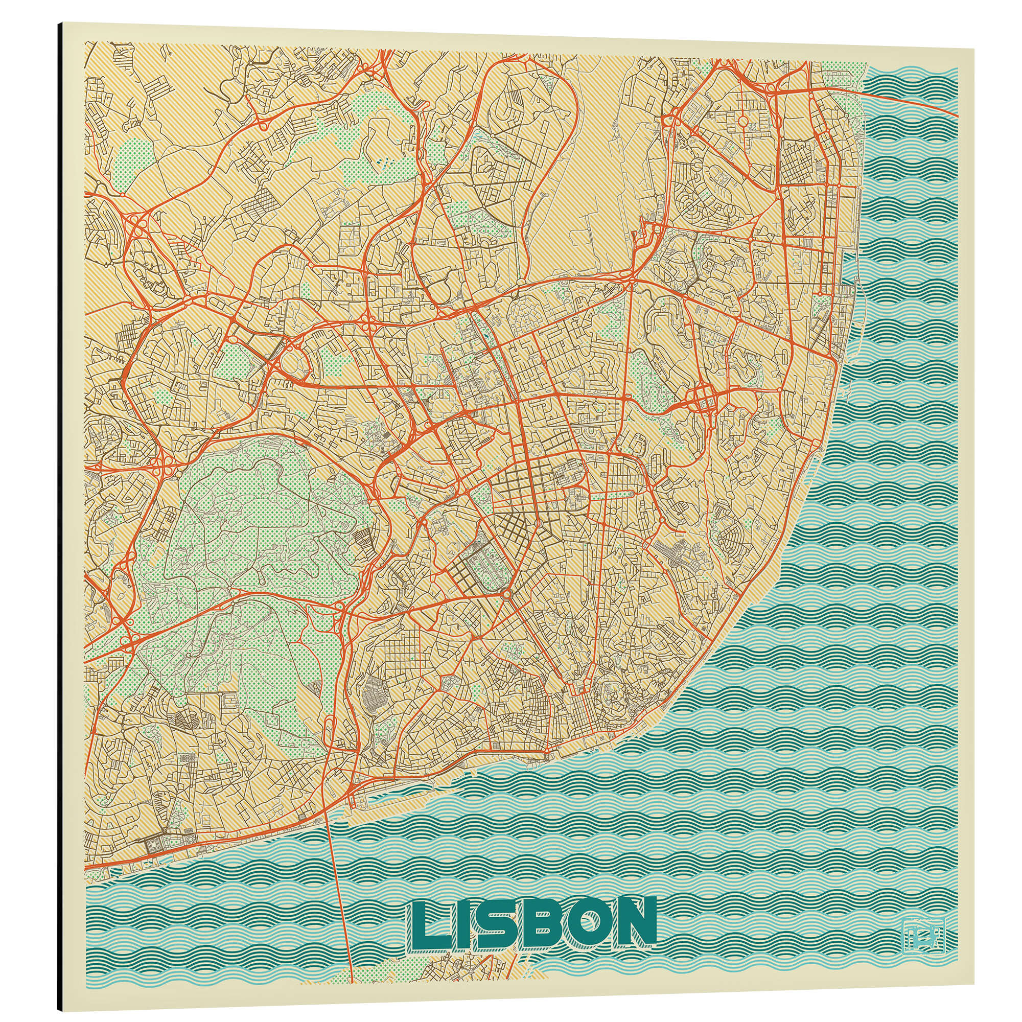 Posterlounge   Wandbilder   Illustration   Hubert Roguski   Magnettafel Karte von Lissabon, Retro