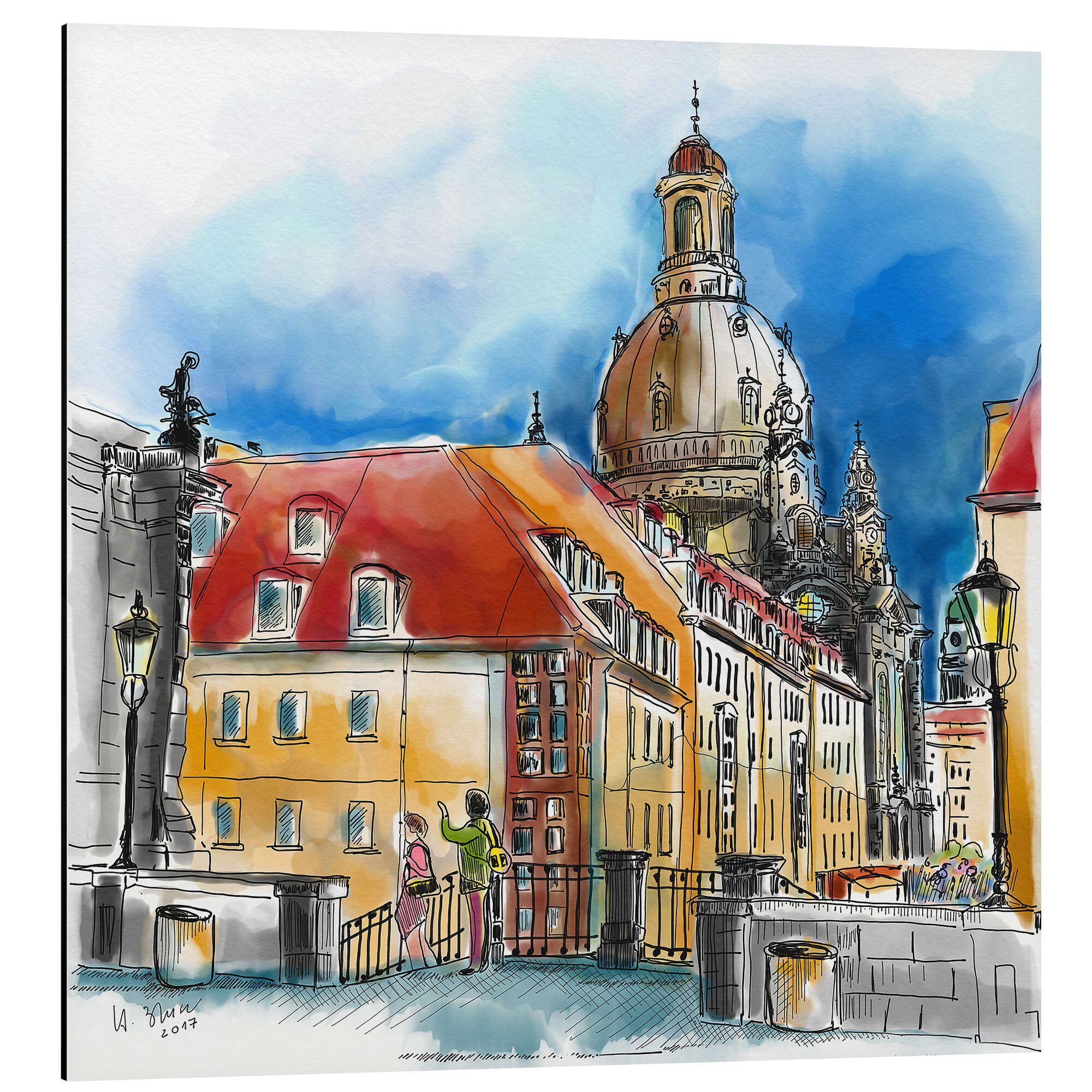 Magnettafel Dresden, Blick über die Münzgasse zur Frauenkirche