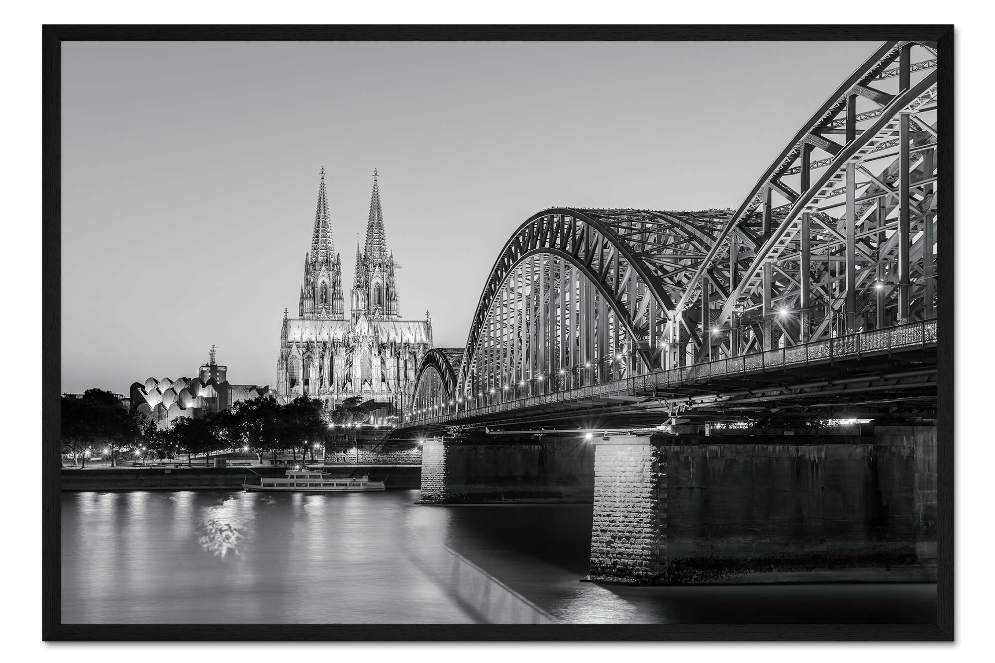 Posterlounge   Wandbilder   Querformat   Michael Valjak   Gerahmter Kunstdruck Köln am Abend schwarz-weiß