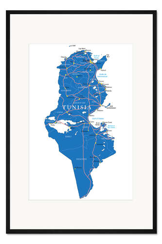 Posterlounge   Wandbilder   Illustration   Gerahmter Kunstdruck Karte Tunesien