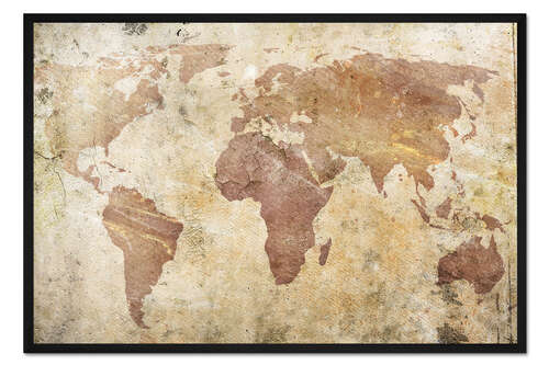 Posterlounge   Wandbilder   Illustration   Gerahmter Kunstdruck Weltkarte auf Stein