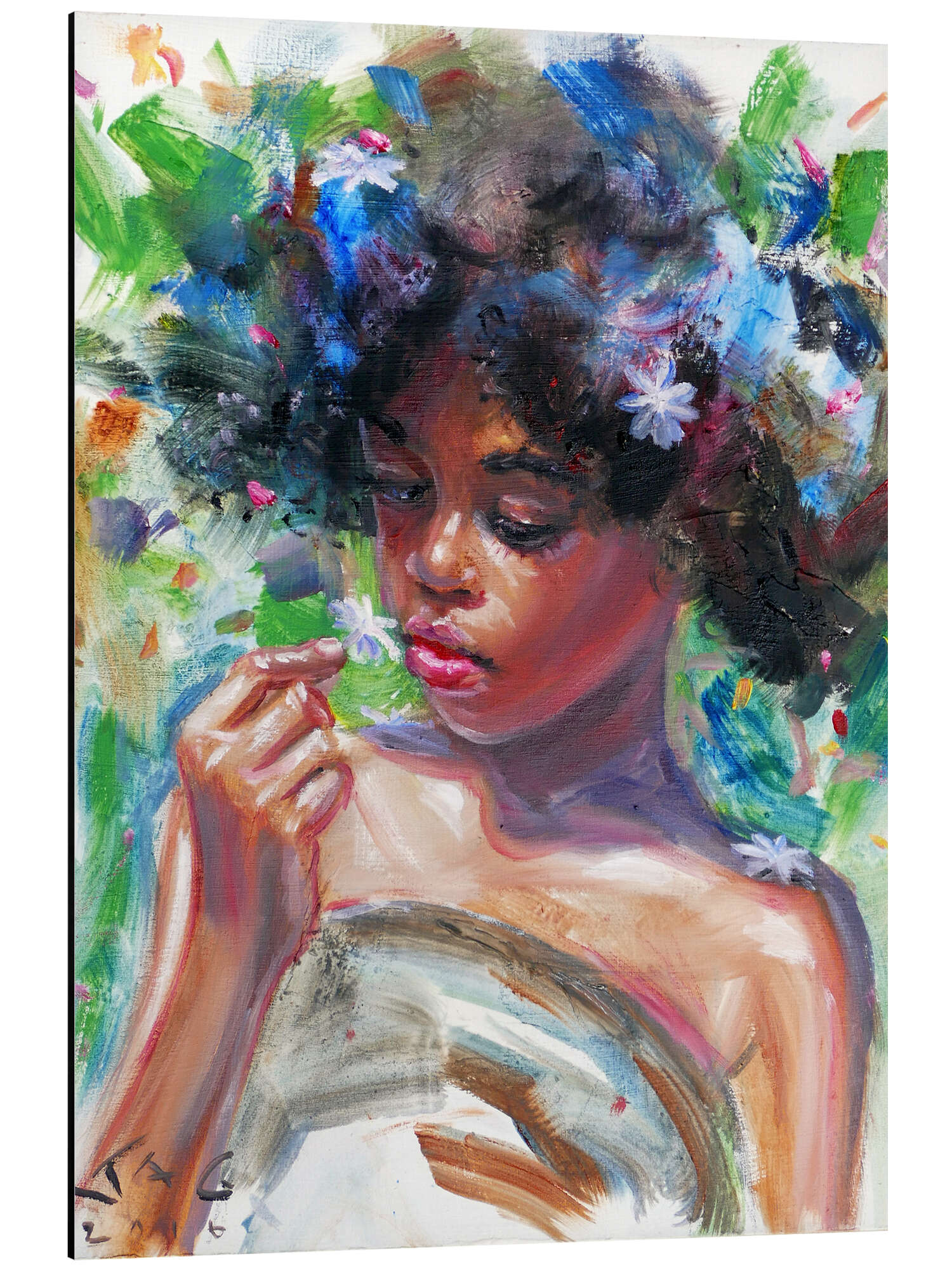 Gina mit blauen Blüten II von Jonathan Guy-Gladding