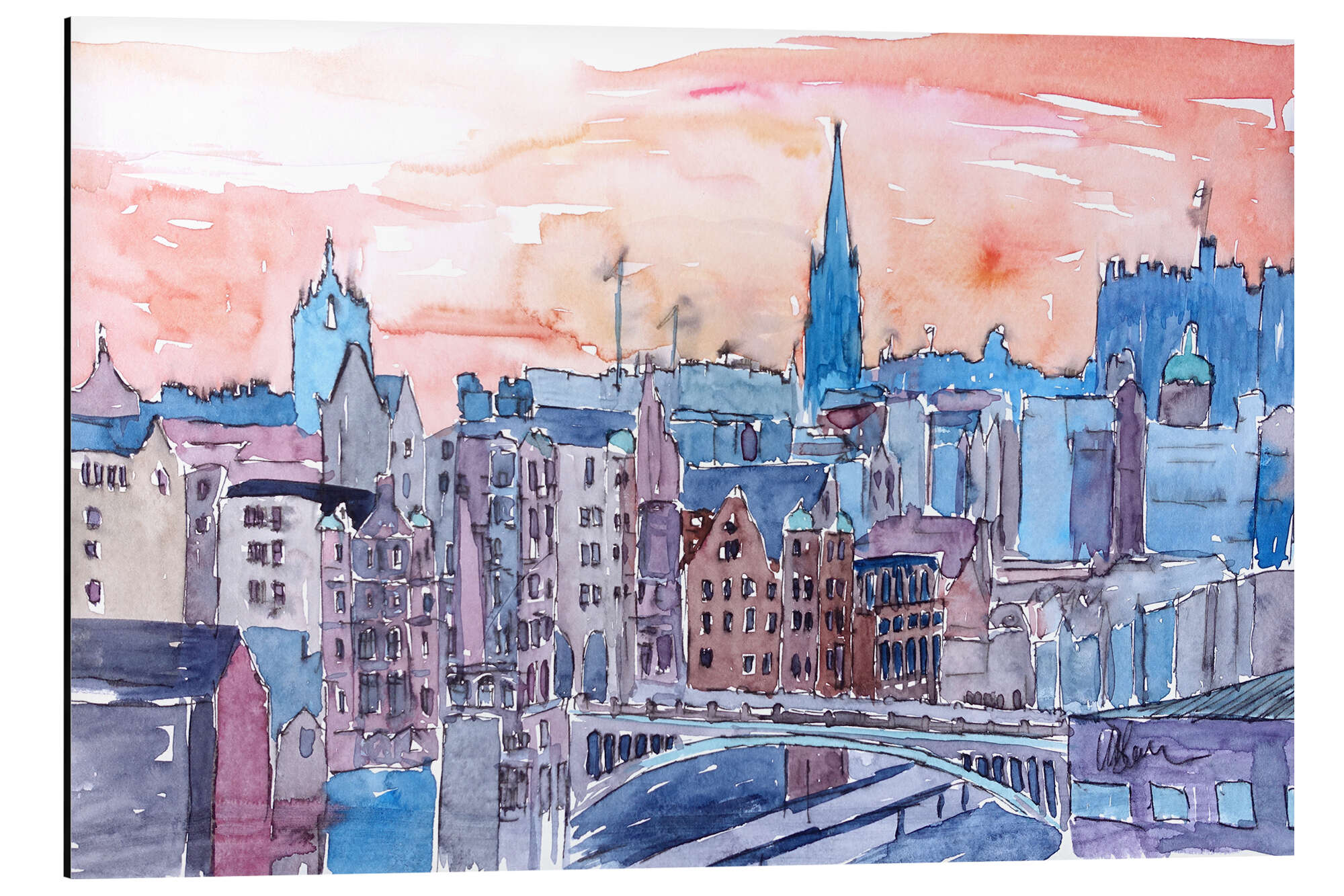 Posterlounge   Wandbilder   Illustration   M. Bleichner   Magnettafel Edinburgh Schottland Sonnenuntergang über der Altstadt