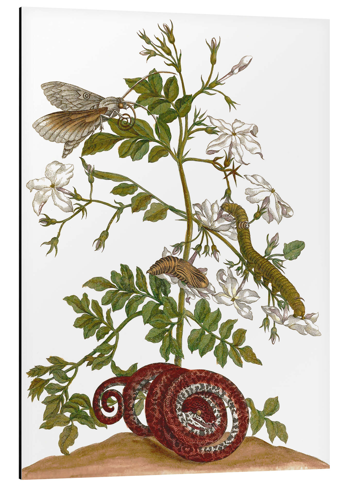 Posterlounge   Wandbilder   Weiß   Maria Sibylla Merian   Magnettafel Jasmin mit Schlange und Lepidoptera Metamorphose