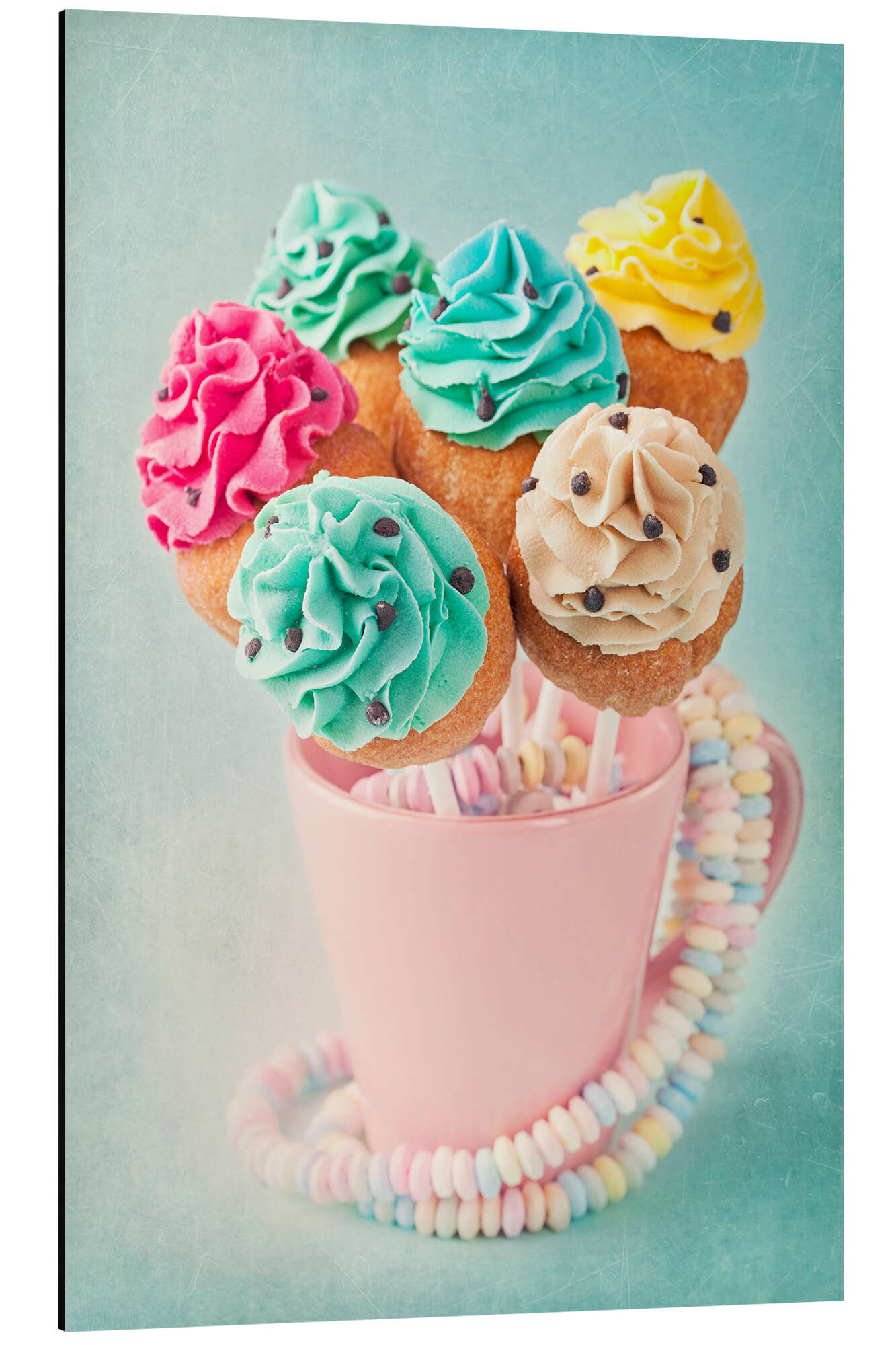 Posterlounge   Wandbilder   Türkis   Elena Schweitzer   Magnettafel Bunte Cupcake Pops auf blauem Hintergrund