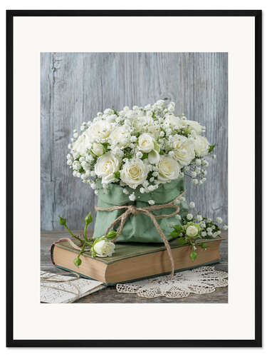 Posterlounge   Wandbilder   Fotografie   Elena Schweitzer   Gerahmter Kunstdruck Weiße Rosen und ein Buch