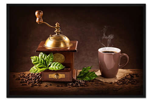 Posterlounge   Wandbilder   Querformat   Elena Schweitzer   Gerahmter Kunstdruck Kaffeemühle mit einer Tasse Kaffee I