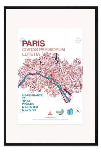 Posterlounge   Wandbilder   Illustration   campus graphics   Gerahmter Kunstdruck Paris Karte Stadtmotiv