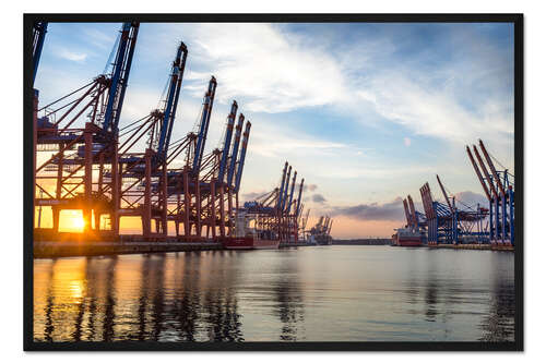 Posterlounge   Wandbilder   Fotografie   Justin Schümann   Gerahmter Kunstdruck Hamburg | Hafen | Sonnenuntergang | Spiegelung | Schiff