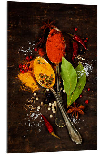 Magnettafel Bunte Gewürze auf einem alten Holzbrett