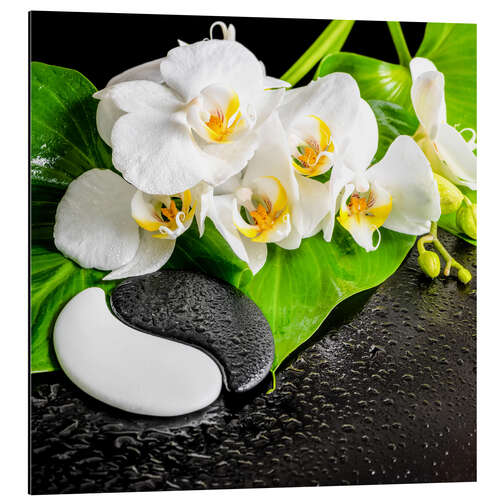 Weiße Orchideen und Yin-Yang Steine
