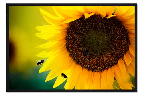 Posterlounge   Wandbilder   Fotografie   Gerahmter Kunstdruck zwei Bienen an Sonnenblume