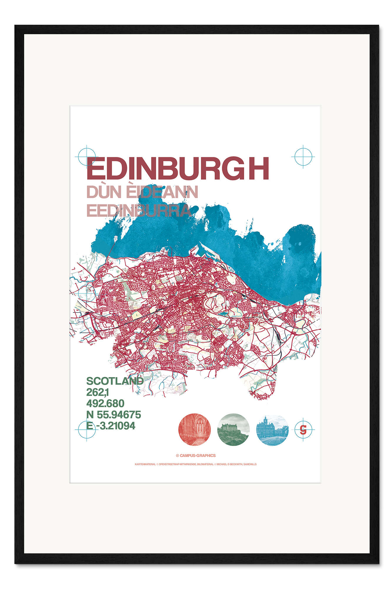Posterlounge   Wandbilder   Illustration   campus graphics   Gerahmter Kunstdruck Edinburgh Karte Stadtmotiv