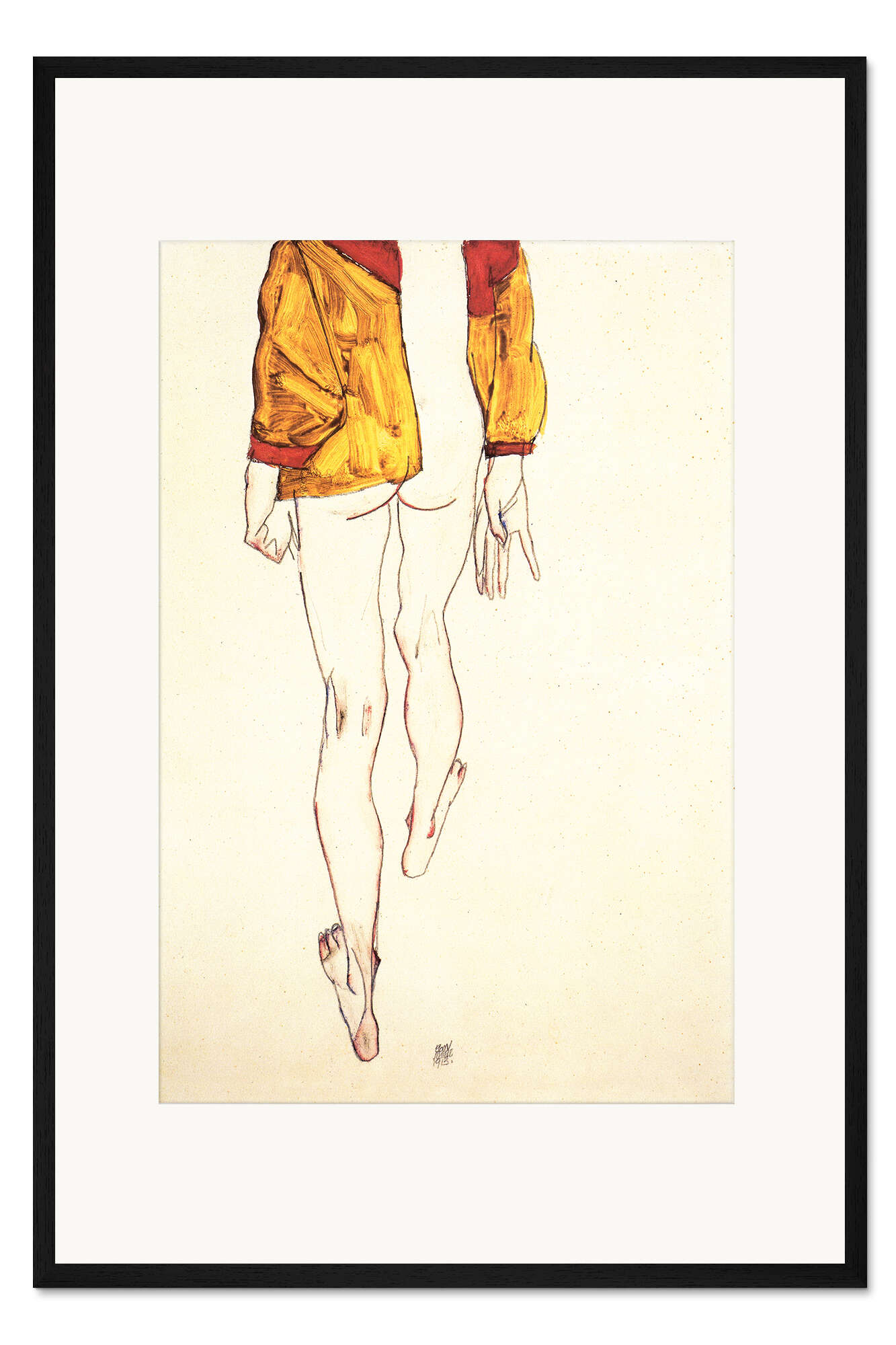 Posterlounge   Wandbilder   Wohnzimmer   Egon Schiele   Gerahmter Kunstdruck Stehender Halbakt mit braunem Hemd