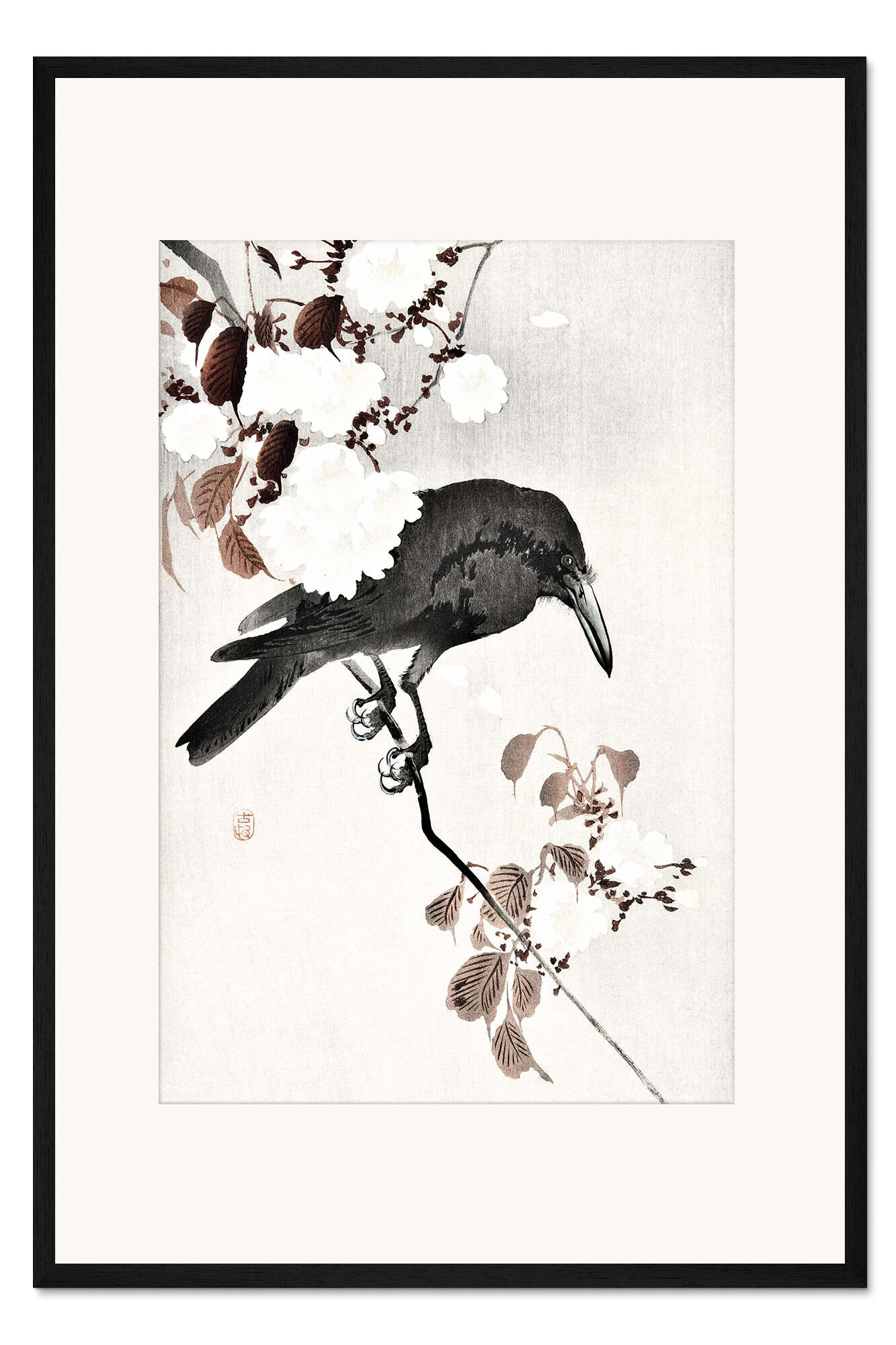 Posterlounge   Künstler   Ohara Koson   Gerahmter Kunstdruck Krähe und Kirschblüte