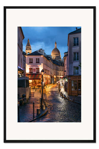 Posterlounge   Wandbilder   Fotografie   Jan Christopher Becke   Gerahmter Kunstdruck Straßencafes in Montmartre mit Sacré-Coeur, Paris