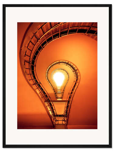Posterlounge   Wandbilder   Orange   Dennis Fischer   Gerahmter Kunstdruck Glühbirne im Treppenhaus
