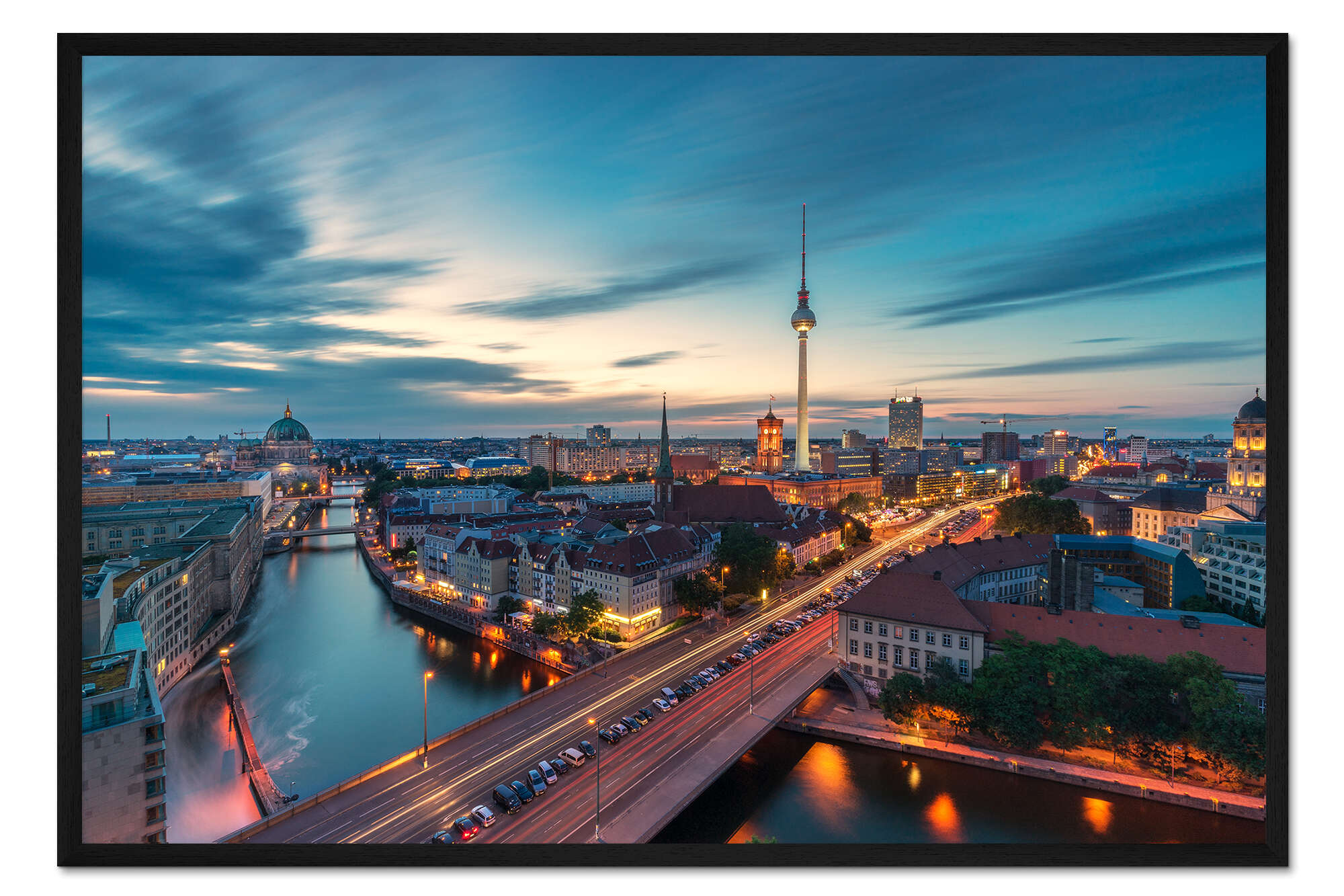 Posterlounge   Wandbilder   Fotografie   Dennis Stracke   Gerahmter Kunstdruck Berlin Panorama zum Sonnenuntergang