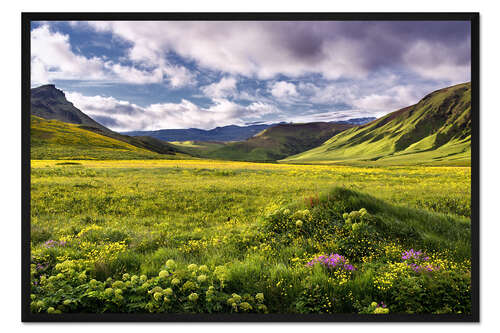Posterlounge   Wandbilder   Fotografie   Dennis Fischer   Gerahmter Kunstdruck Grüne Landschaft auf Island