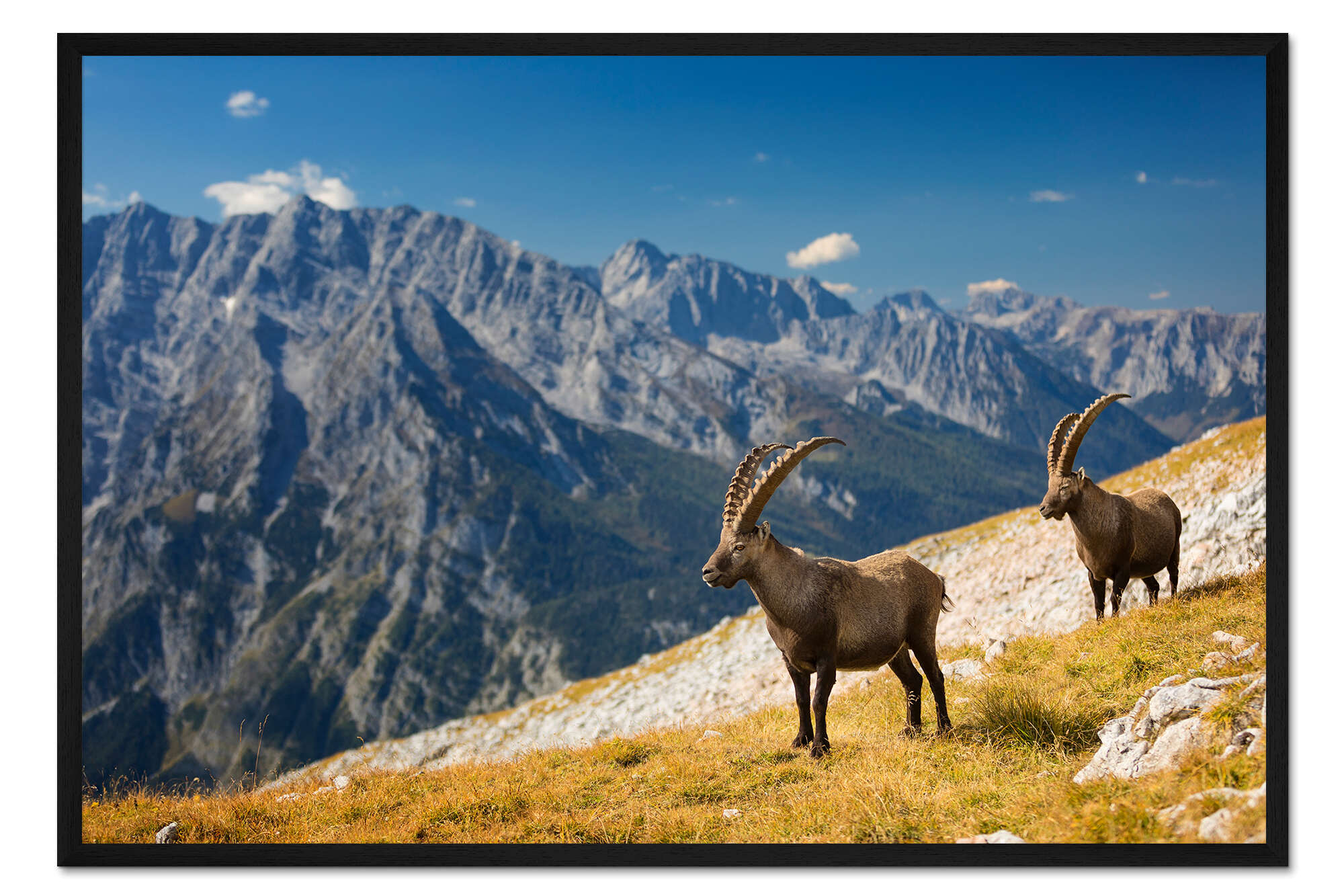 Posterlounge   Wandbilder   Querformat   Dieter Meyrl   Gerahmter Kunstdruck Steinböcke im Nationalpark Berchtesgaden vor Watzmann