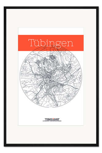 Posterlounge   Wandbilder   Illustration   campus graphics   Gerahmter Kunstdruck Tübingen Karte Kreis