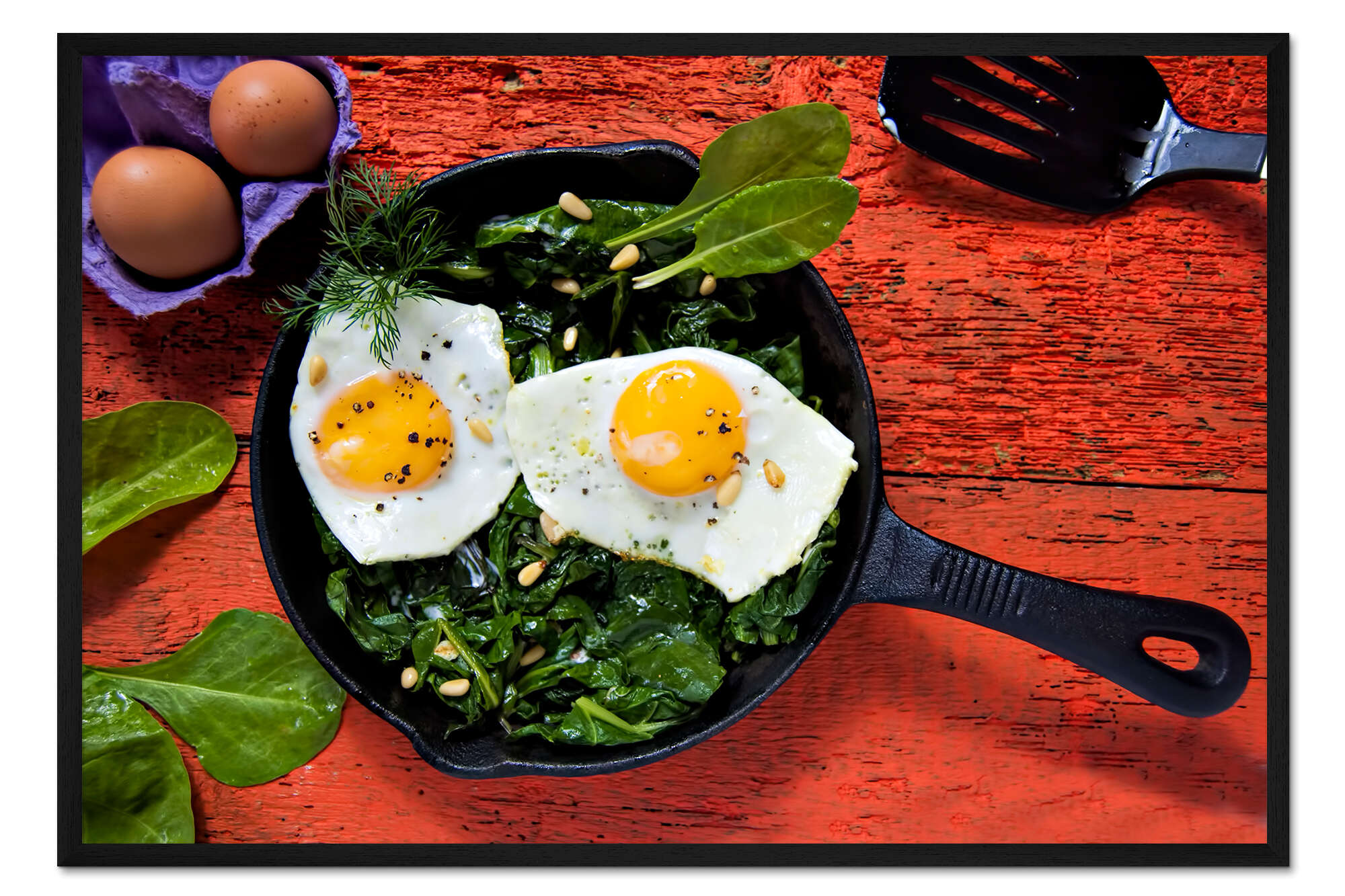 Posterlounge   Wandbilder   Esszimmer   K&L Food Style   Gerahmter Kunstdruck Frühstückspfanne Eier auf Spinat