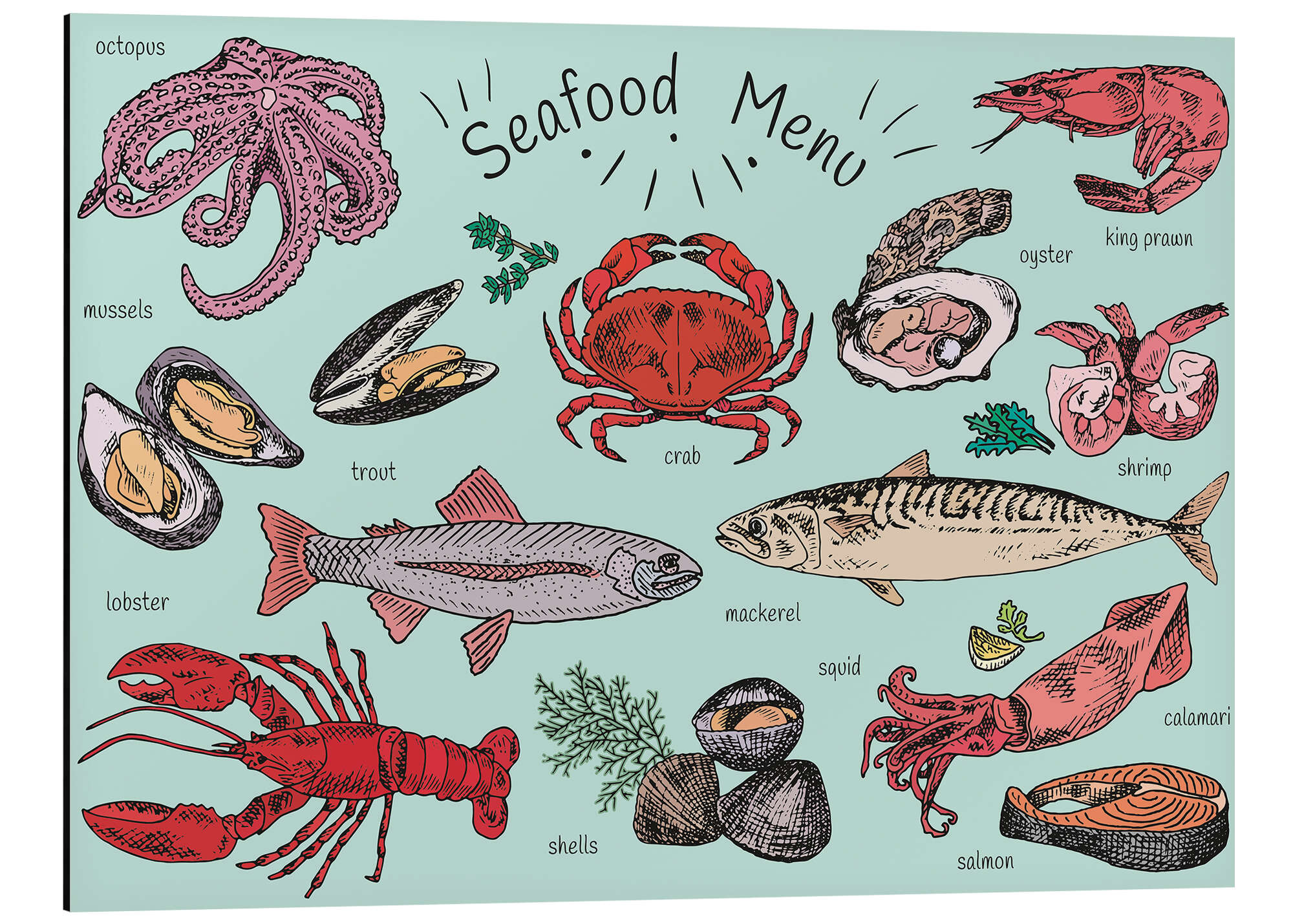 Posterlounge   Kollektionen   Editors Choice   Magnettafel Meeresfrüchte Menü