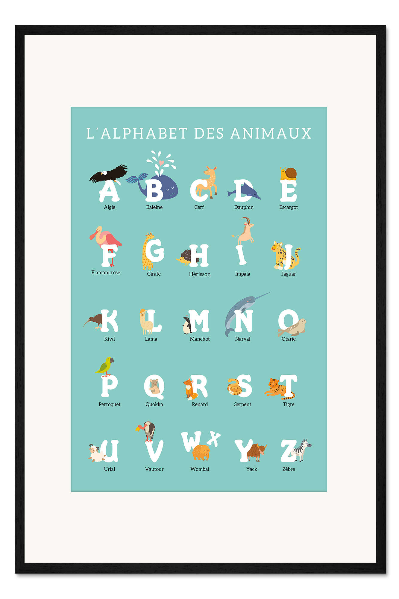 Posterlounge   Wandbilder   Illustration   Kidz Collection   Gerahmter Kunstdruck Alphabet der Tiere – Französisch
