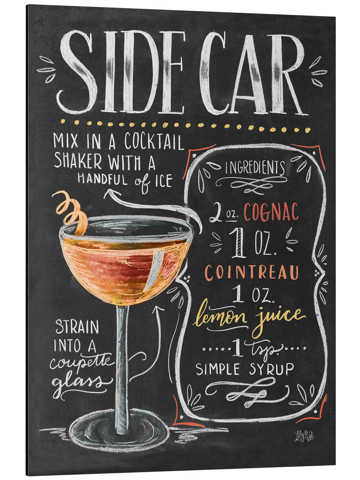 Posterlounge   Wandbilder   Schwarz   Lily & Val   Magnettafel Sidecar Rezept (Englisch)