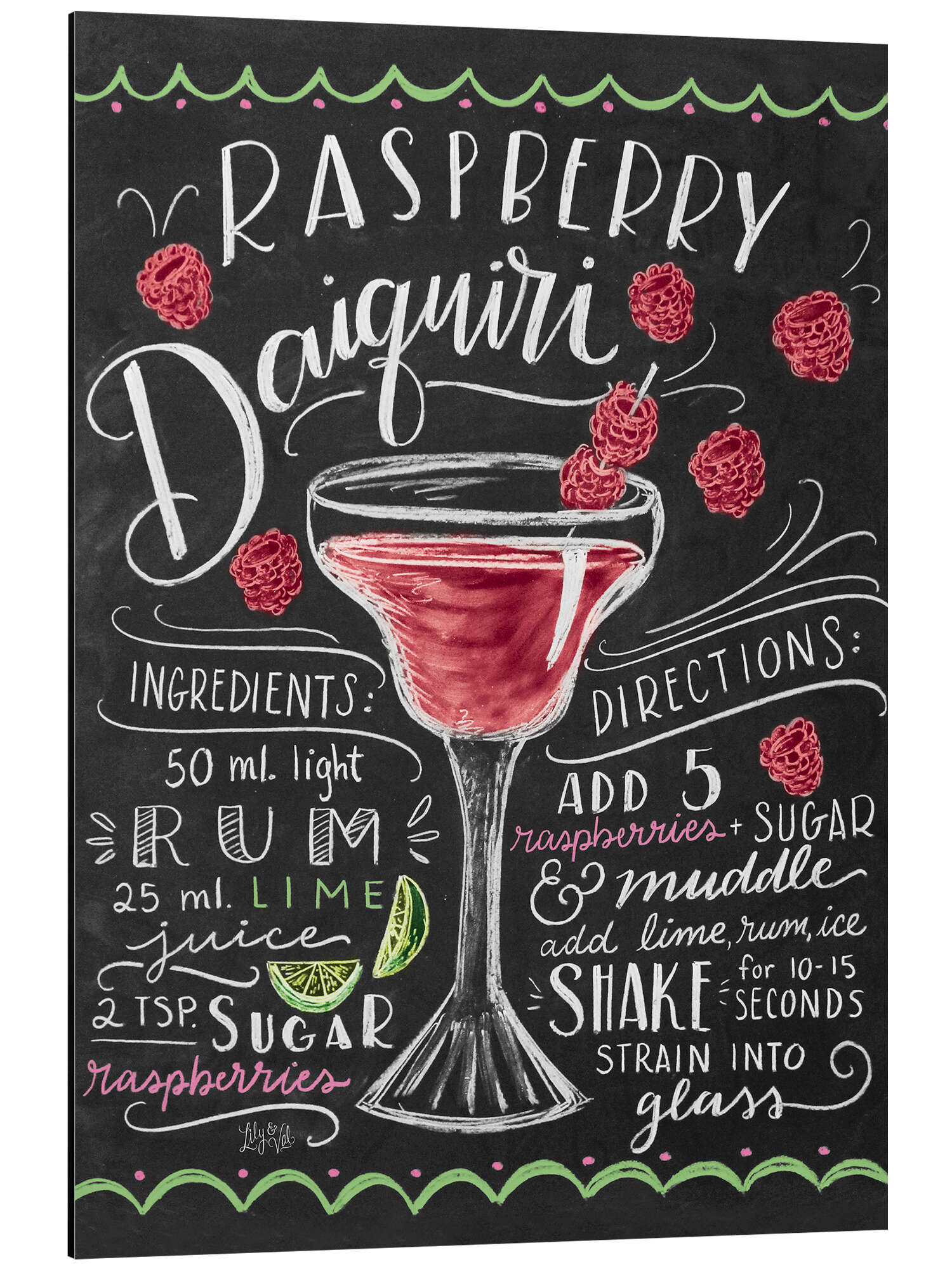 Posterlounge   Wandbilder   Hochformat   Lily & Val   Magnettafel Himbeer-Daiquiri Rezept (Englisch)