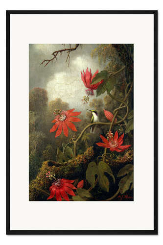 Posterlounge   Wandbilder   Grün   Martin Johnson Heade   Gerahmter Kunstdruck Kolibri und Passionsblumen
