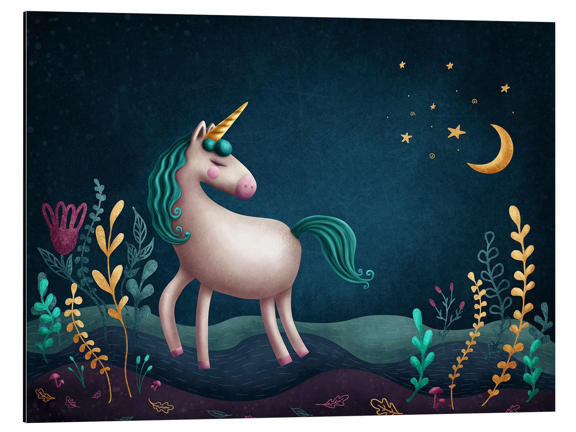 Posterlounge   Wandbilder   Illustration   Elena Schweitzer   Magnettafel Einhorn im Zauberwald II