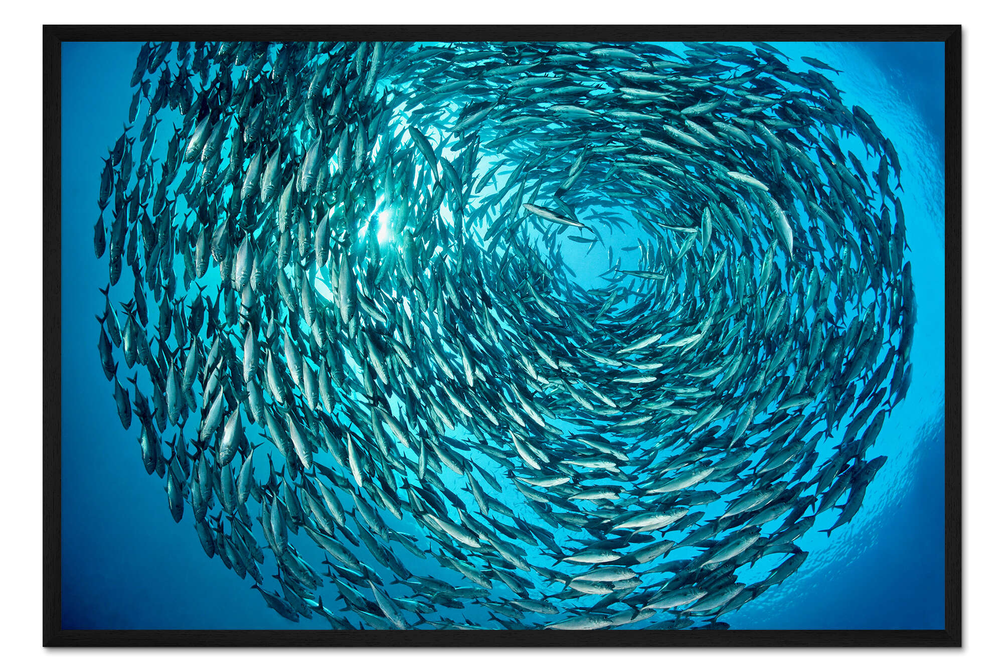 Posterlounge   Wandbilder   Türkis   Gerahmter Kunstdruck Großer Schwarm Grossaugen-Makrelen