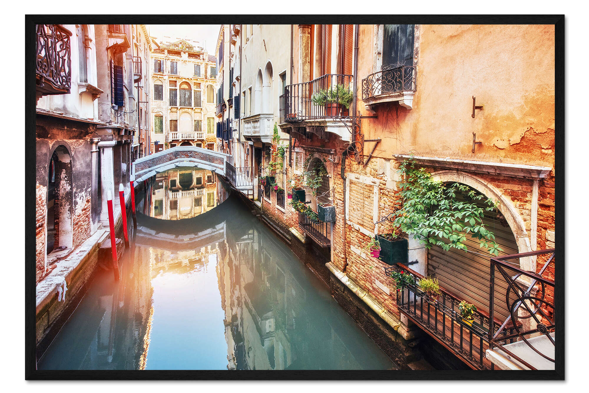 Posterlounge   Wandbilder   Fotografie   Gerahmter Kunstdruck Traditionelle Gondeln zwischen bunten Häusern in Venedig