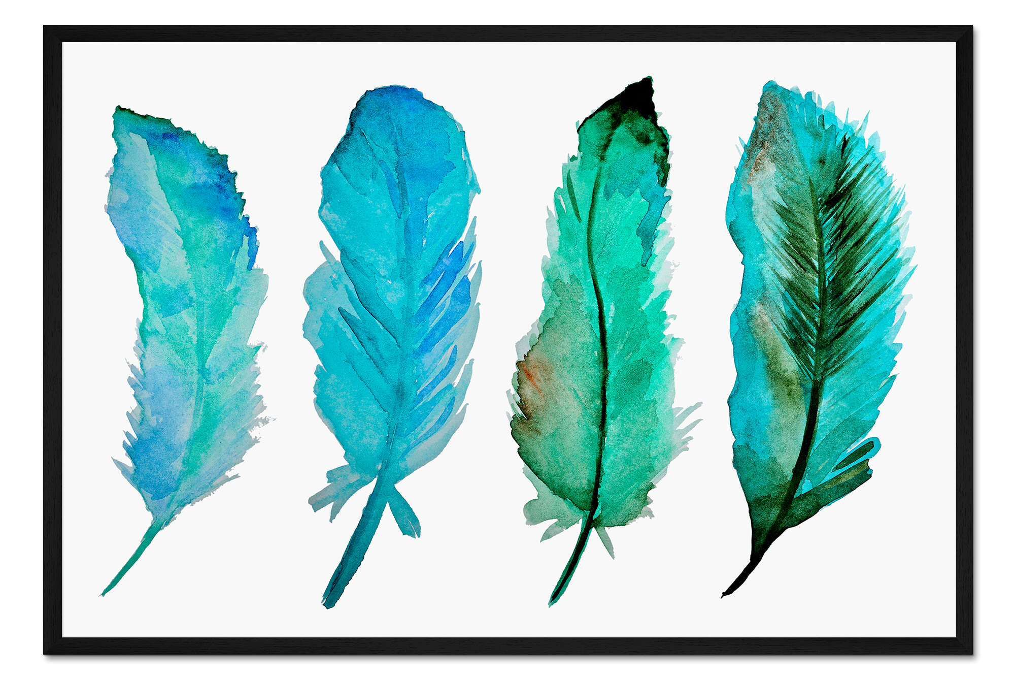 Posterlounge   Wandbilder   Türkis   Gerahmter Kunstdruck Vier Federn