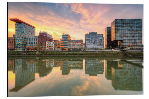 Posterlounge   Wandbilder   Fotografie   Michael Valjak   Magnettafel Düsseldorf Spiegelung im Medienhafen bei Sonnenuntergang
