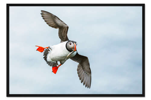 Posterlounge   Wandbilder   Fotografie   Moqui, Daniela Beyer   Gerahmter Kunstdruck Papageitaucher im Anflug mit Fisch