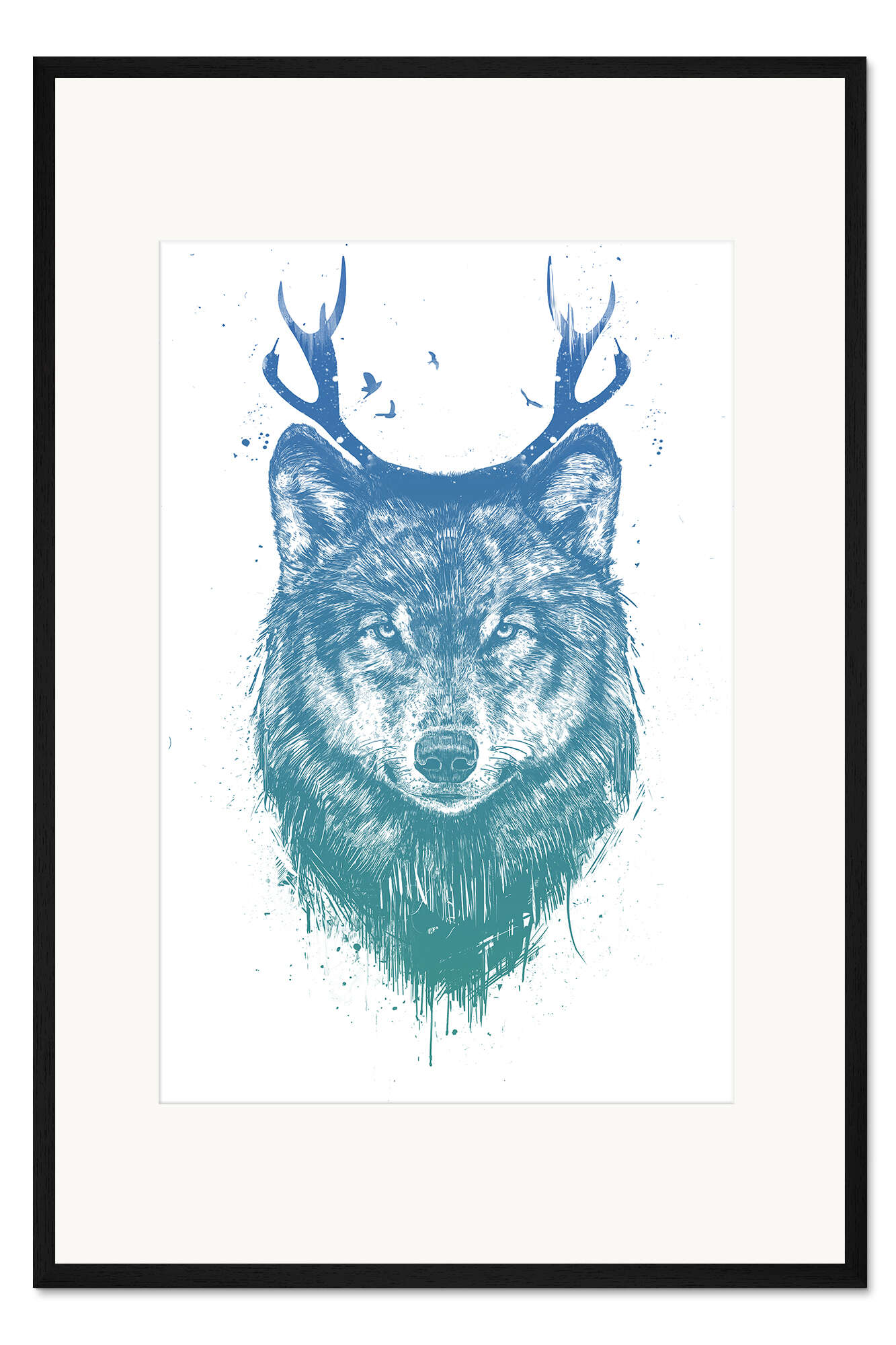 Posterlounge   Wandbilder   Blau   Balazs Solti   Gerahmter Kunstdruck Deer wolf
