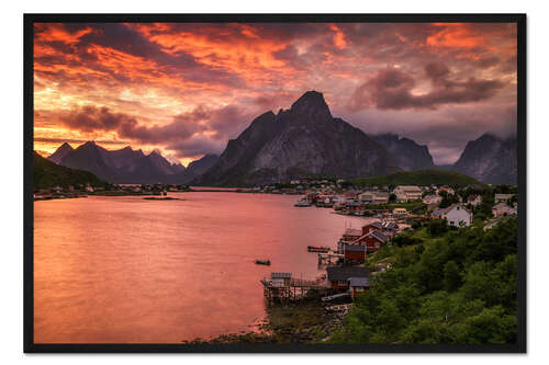 Posterlounge   Wandbilder   Fotografie   Dennis Fischer   Gerahmter Kunstdruck Lofoten Sonnenuntergang in Reine