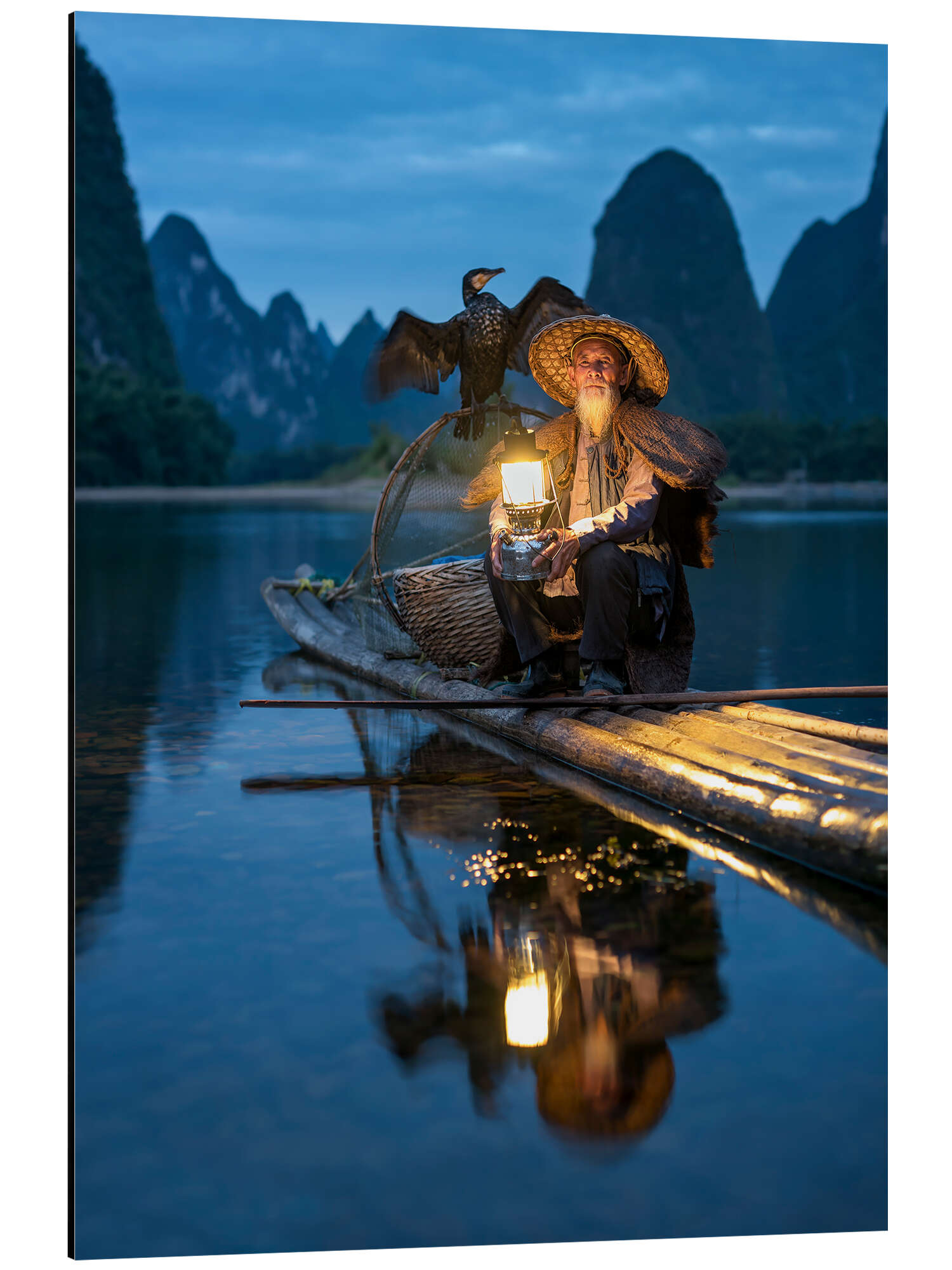 Posterlounge   Wandbilder   Blau   Jan Christopher Becke   Magnettafel Alter Kormoranfischer in Guilin, China