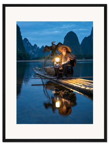 Posterlounge   Wandbilder   Blau   Jan Christopher Becke   Gerahmter Kunstdruck Alter Kormoranfischer in Guilin, China